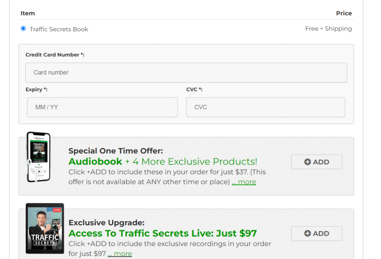 When you visit the upsell page, you have the option to purchase the digital download of the audio recording for the Traffic Secrets book.
